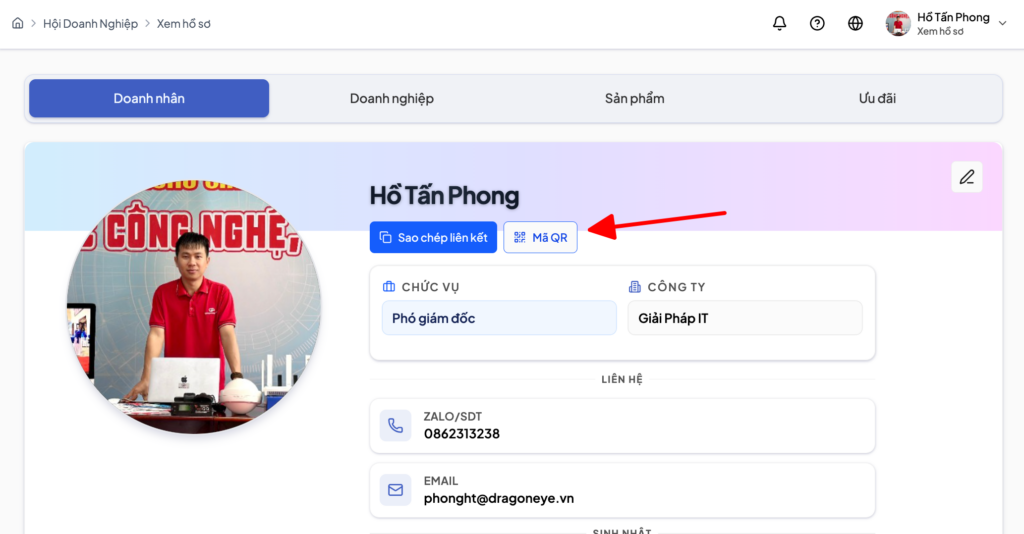 Hoặc anh chị cũng có thể cung cấp Qrcode trong “Hồ sơ hội viên” ở trên để checkin tại sự kiện.